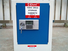 劇毒藥品柜帶電子密碼鎖+機(jī)械鎖,帶防盜報(bào)警功能,雙鎖兩人管理,開(kāi)門(mén)時(shí)需兩人同時(shí)在場(chǎng),符合易制毒化學(xué)品儲(chǔ)存管理要求。